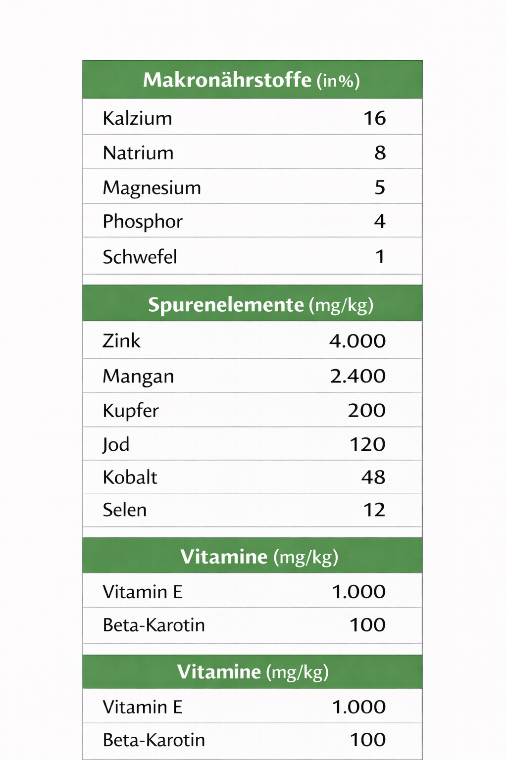 - Kombination von Substanzen mit starker regulierender Wirkung auf den Vormagen